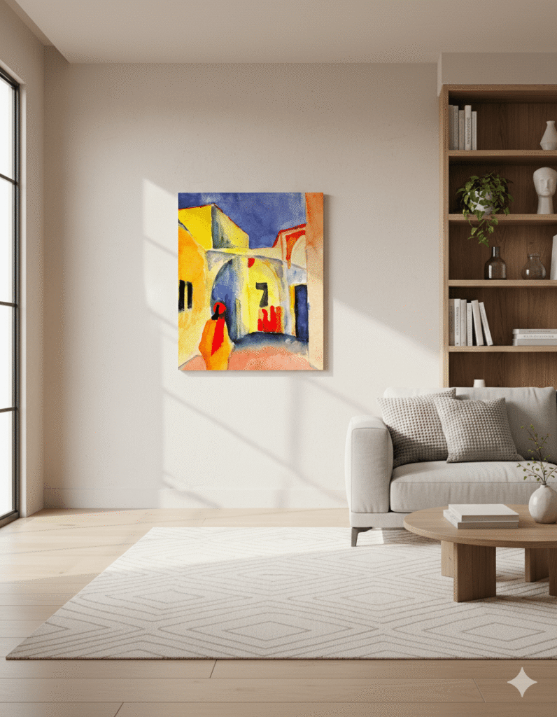 August Macke,(1887-1914) Dışavurumcu Alman ressam. Doğanın olduğu gibi temsili yerine duyguların ve iç dünyanın ön plana çıkarıldığı dışavurumculuk akımının önde gelen temsilcileri arasında kabul edilir. Henüz 27 yaşındayken Alman Ordusu saflarında savaşırken öldü.